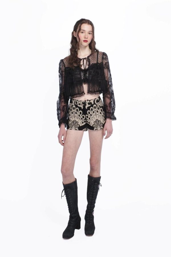 Make a statement with these eye-catching Beardsley Tapestry Shorts featuring a vibrant, artistic pattern that turns heads. The mini length delivers a playful, fashion-forward silhouette perfect for summer styling.