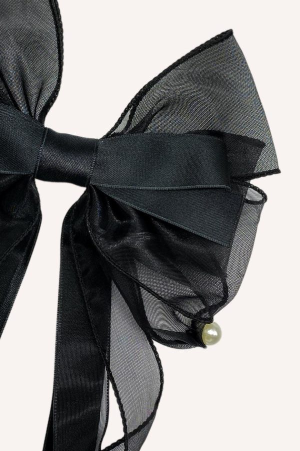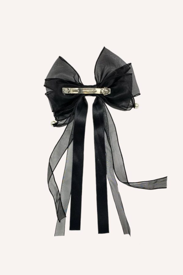 This exquisite barrette showcases a sophisticated black bow adorned with lustrous pearl accents and elegant trailing ribbons, creating the perfect finishing touch for your romantic bridal style. Effortlessly secure it into any hairstyle for an instant transformation into graceful, ballet-inspired elegance.