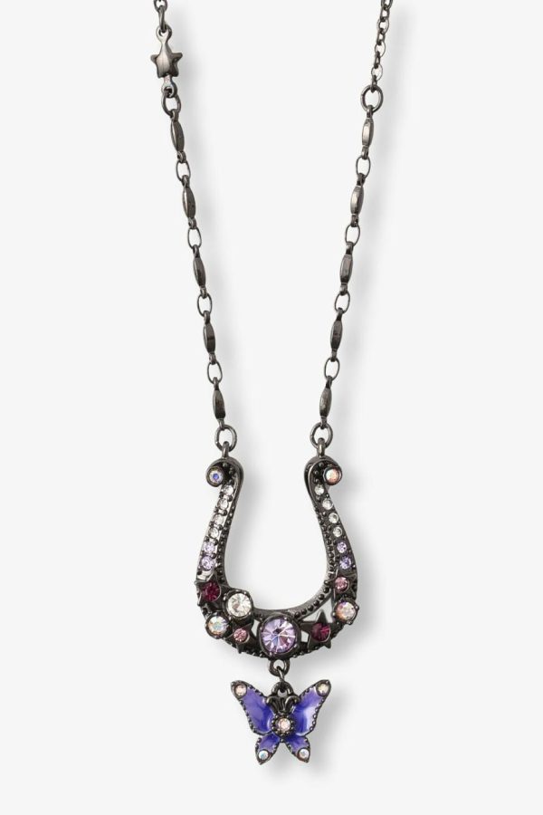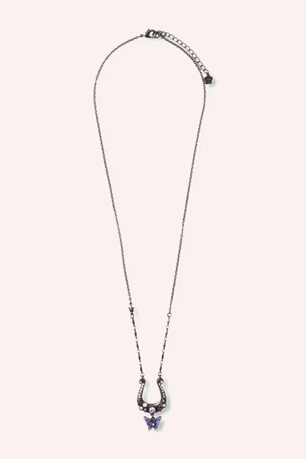 Anna Sui Lucky Horseshoe Charm Necklace – Gunmetal