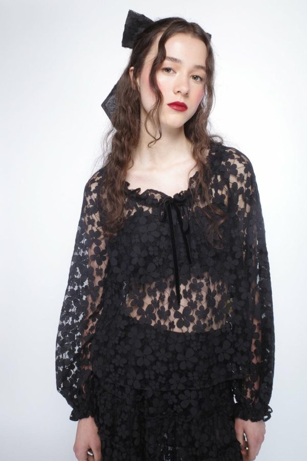 Expertly crafted from premium soft tulle, this blouse showcases intricate lace detailing that elevates your style effortlessly. The innovative elasticized design creates a universally flattering silhouette that moves with you throughout your day.