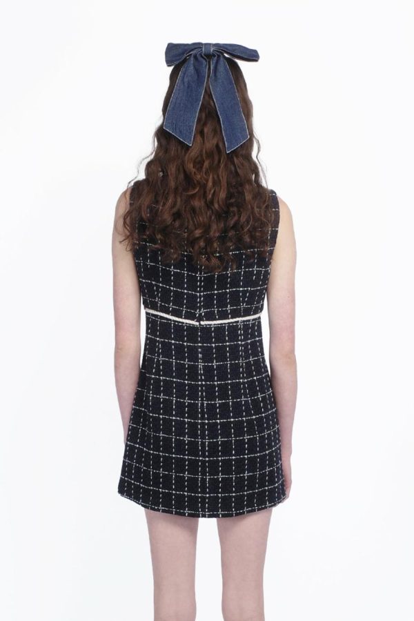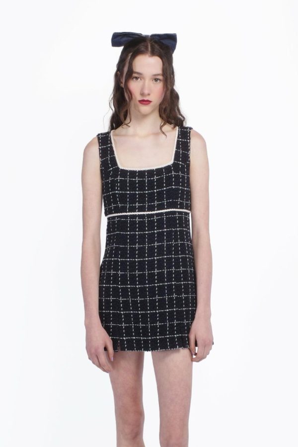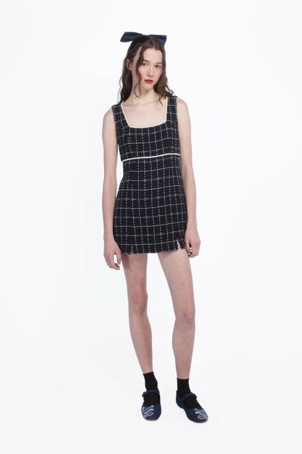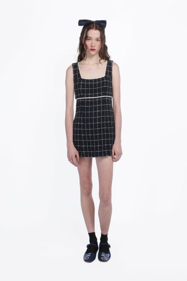Anna Sui Windowpane Tweed Square Neck Mini Dress | Resort 2025
