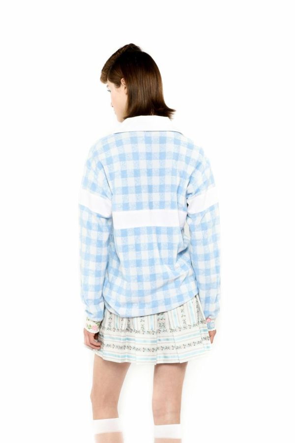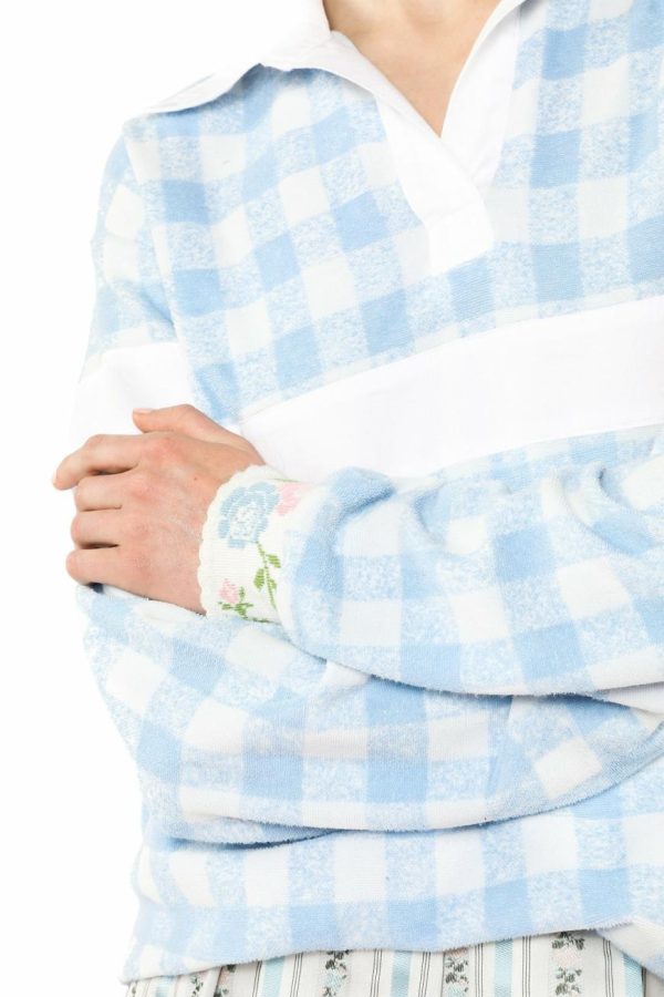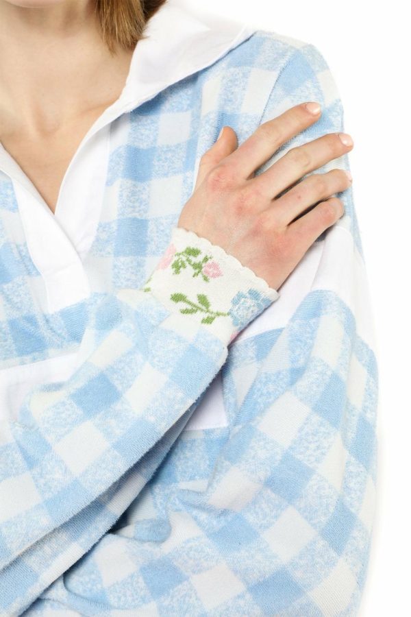 Discover exceptional comfort and effortless style with our Gingham Terry Long Sleeve Top. Made from premium stretch terry cloth, this top delivers superior softness and a perfectly relaxed silhouette. The distinctive floral cuffs create an eye-catching detail that elevates the classic gingham design.
