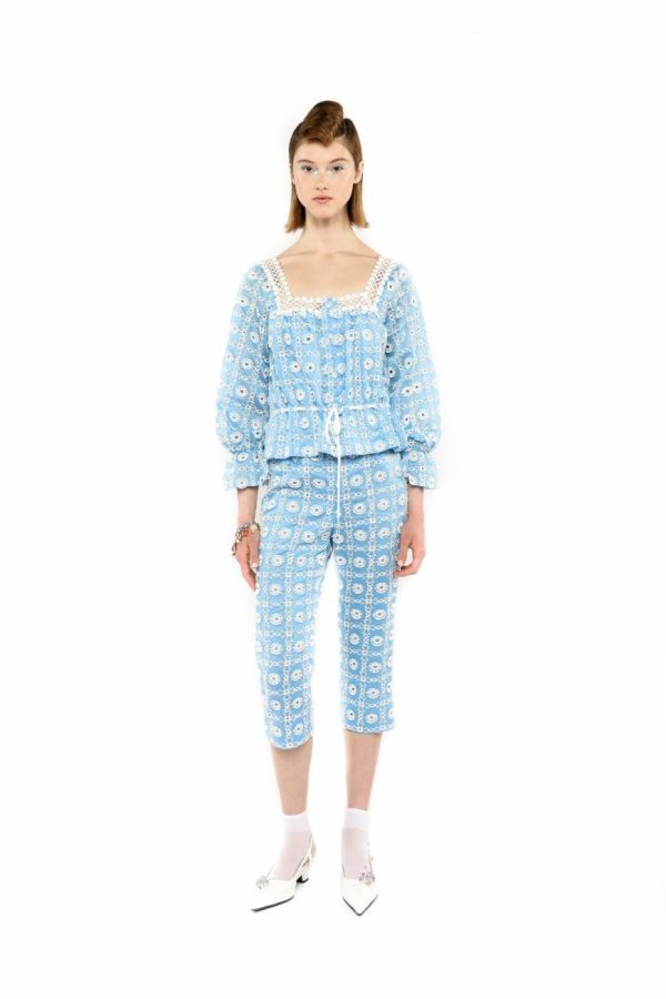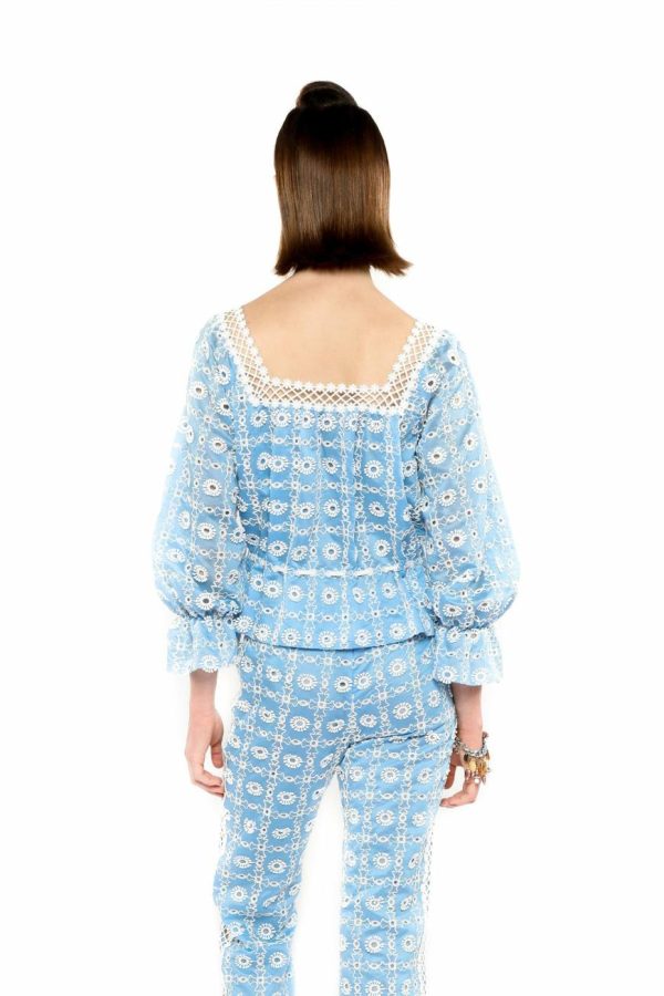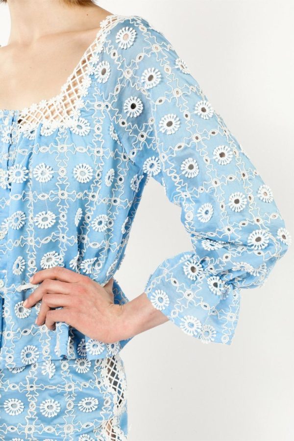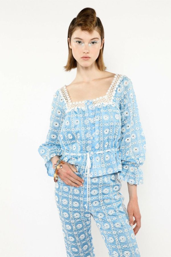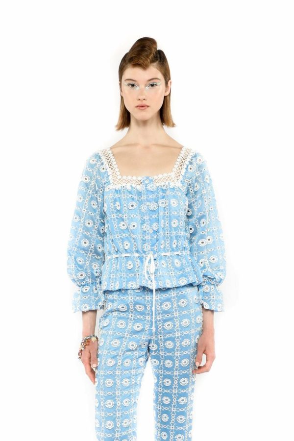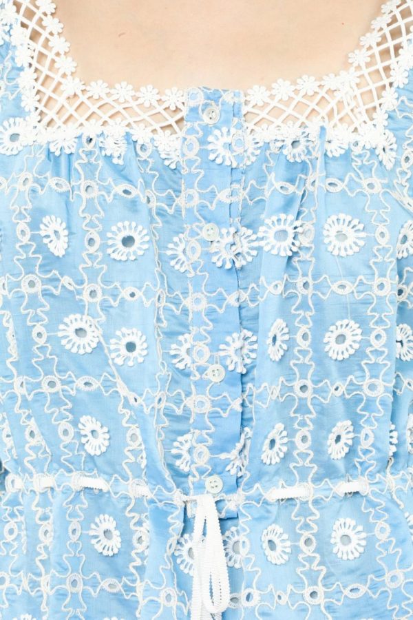 Anna Sui Women’s Lattice Lace Embroidery Tie Blouse