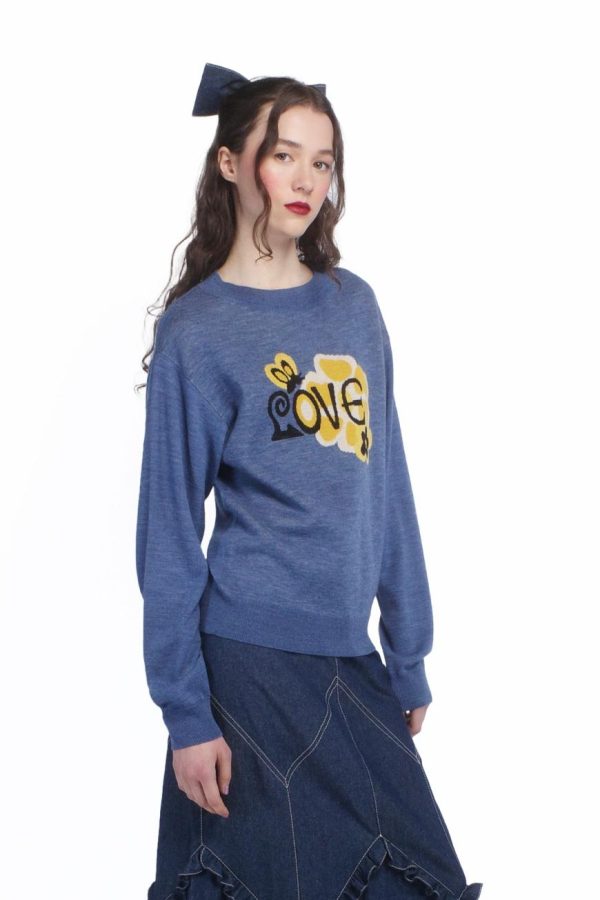 Embrace effortless style with the Knitwear Love Sweater, featuring a cozy yet sophisticated design that delivers both comfort and fashion-forward appeal. Expertly crafted from a premium acrylic and wool blend, this sweater provides exceptional softness and warmth while maintaining its beautiful shape. The eye-catching “LOVE” motif adorned with vibrant floral accents and a delicate butterfly creates a charming, conversation-starting centerpiece that elevates any casual ensemble.