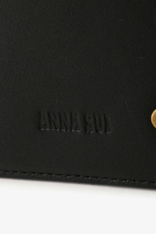 - Exterior: 2 Decorative buttons, Chain attachment, 1 Clear slot, embossed Anna Sui logo