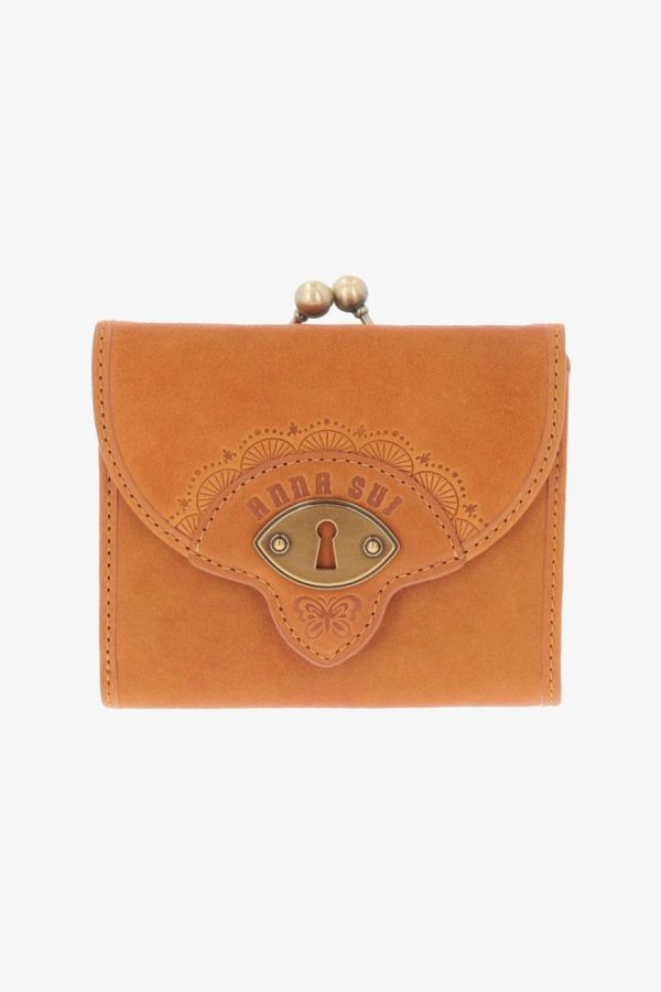 - Exterior: Embossing, Anna Sui logo, Decorative keyhole closure