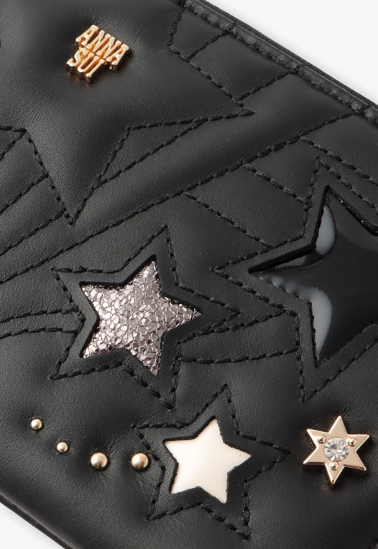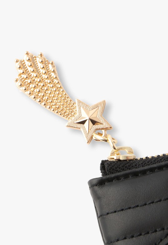 Introducing the Starstruck Half-Zip Wallet, a unique accessory made from premium cowhide leather. Featuring striking star patchwork and stylish stud detailing, this wallet captures attention with its playful design. The whimsical shooting star handle adds a fun twist.