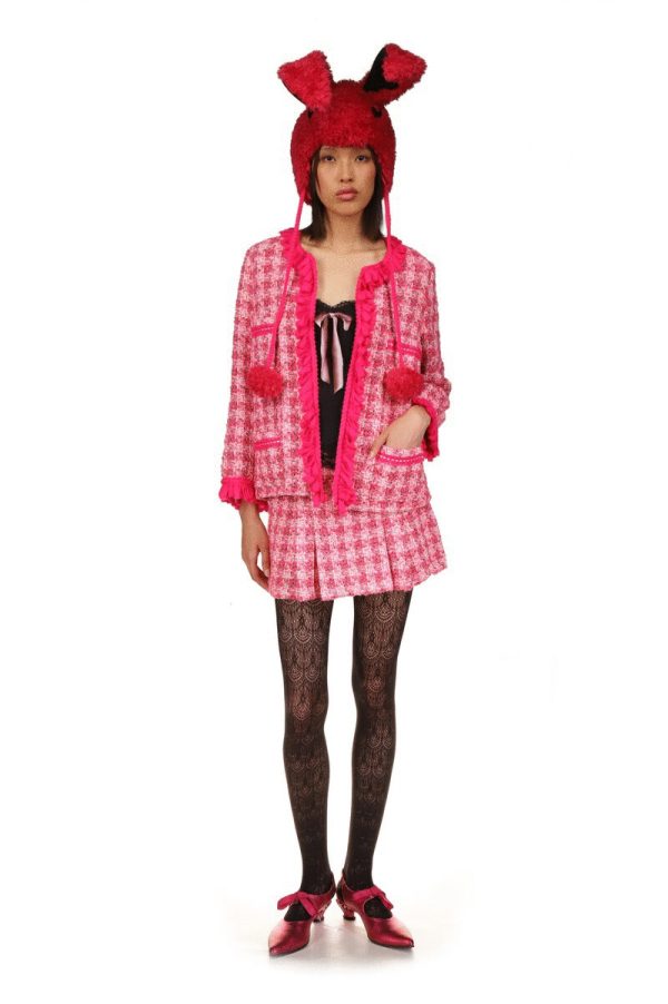 Coats & Jackets | Women Anna Sui Ribbon Chenille Tweed Jacket Pink