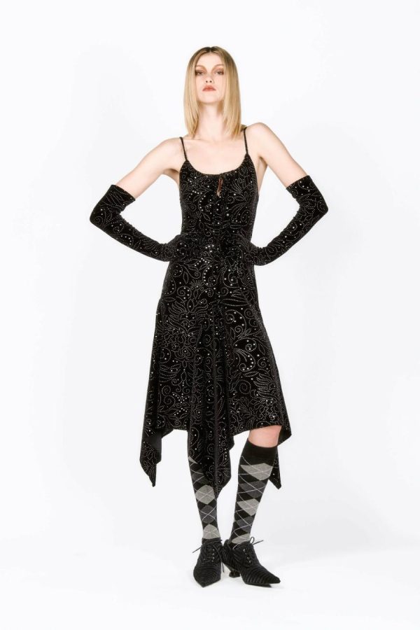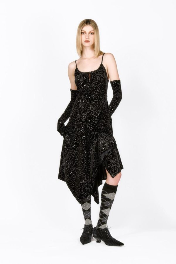 Step into timeless elegance with our Jubilee Velvet Godet Dress, a stunning reissue from the iconic Anna Sui Fall 1998 collection. Crafted from luxurious velvet, this dress features a flattering godet design that creates beautiful movement and a graceful silhouette.