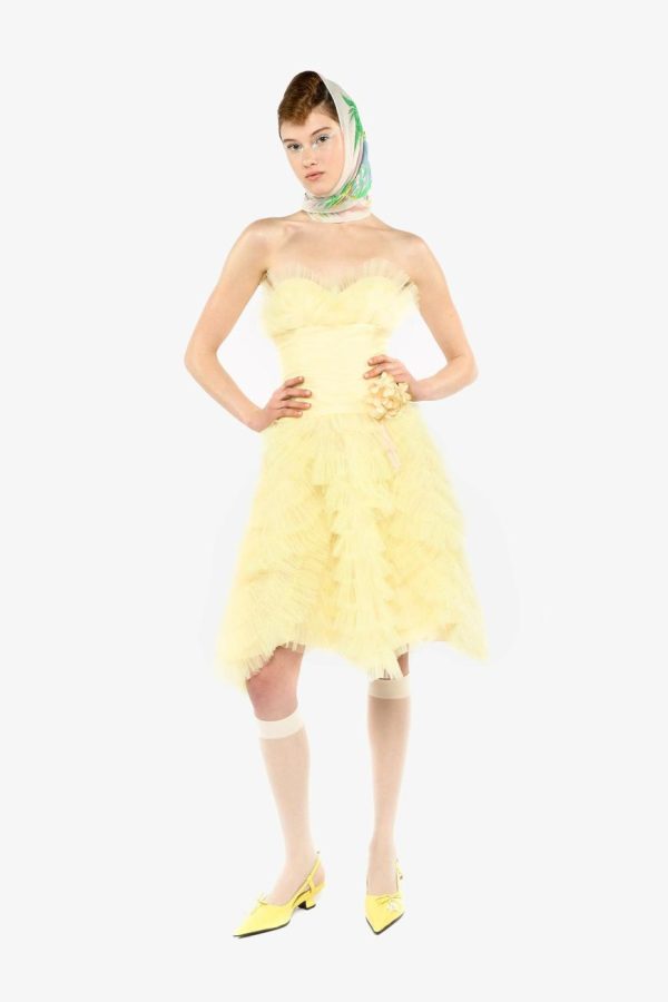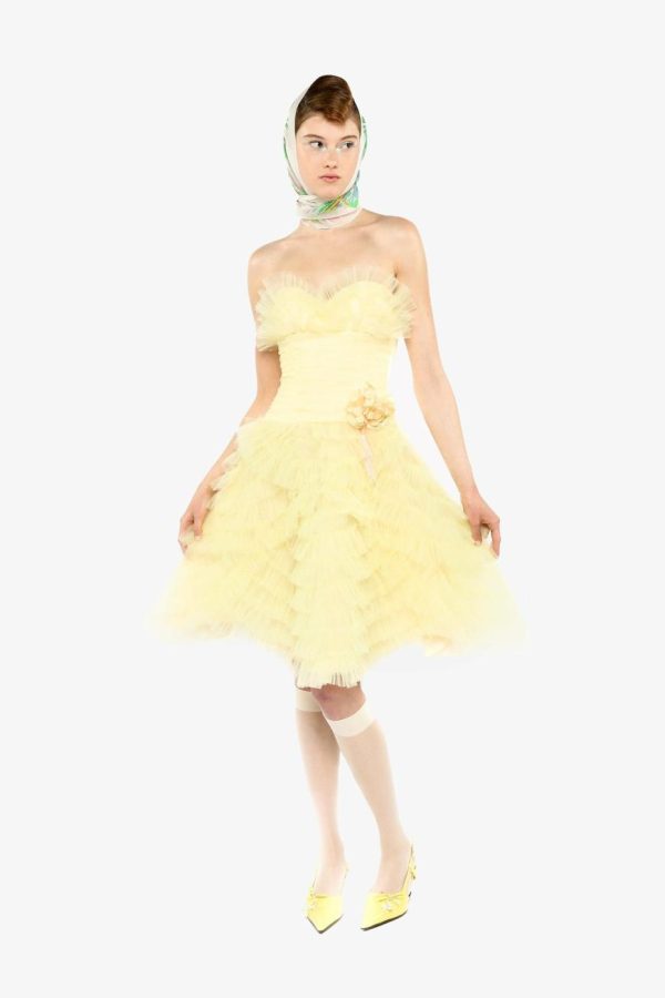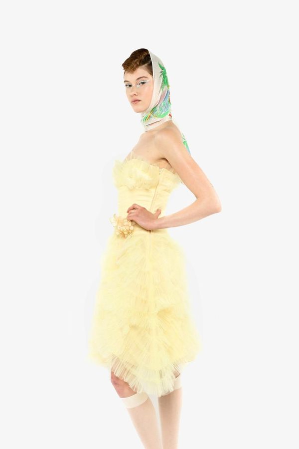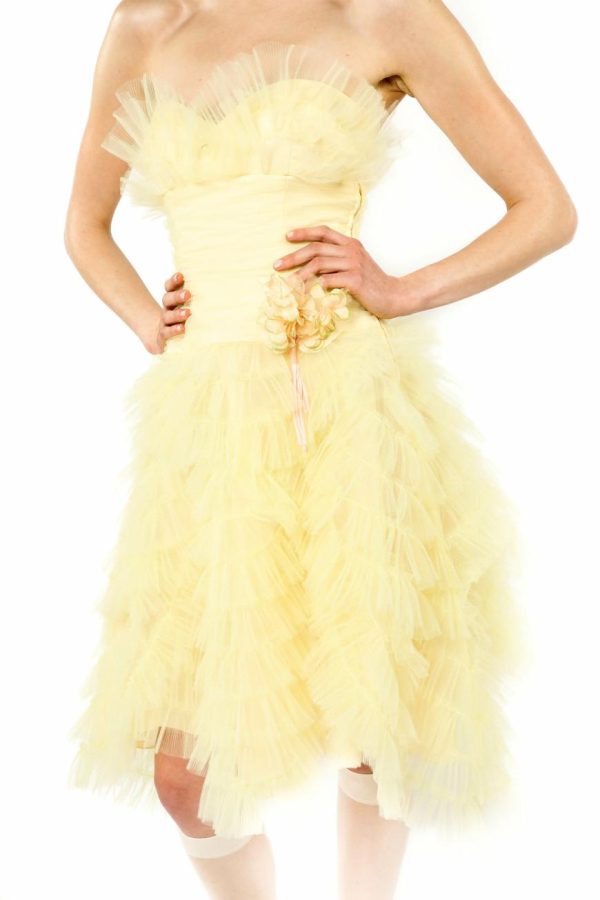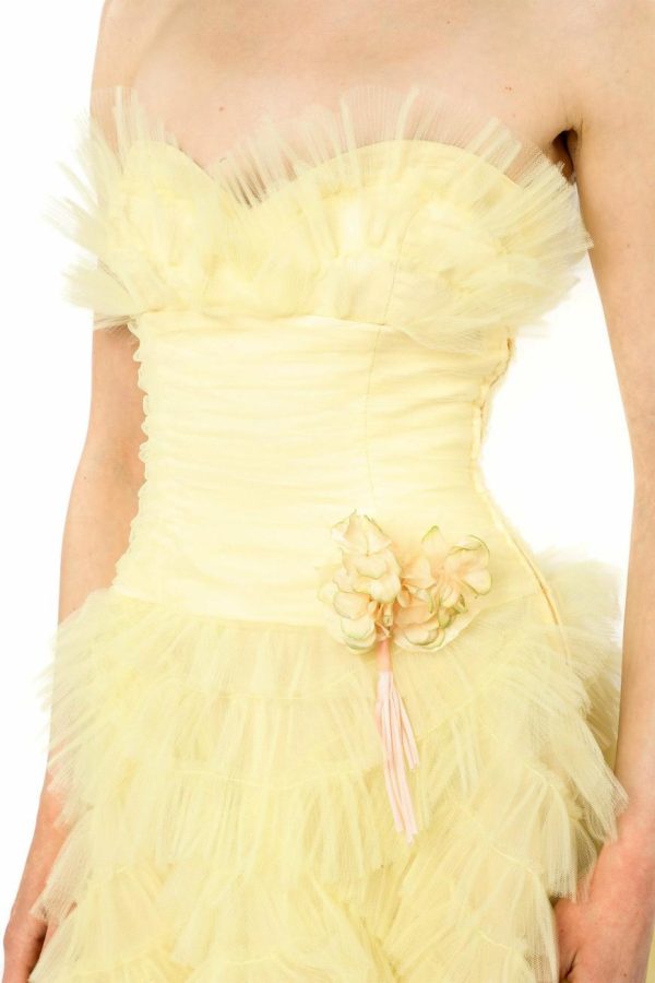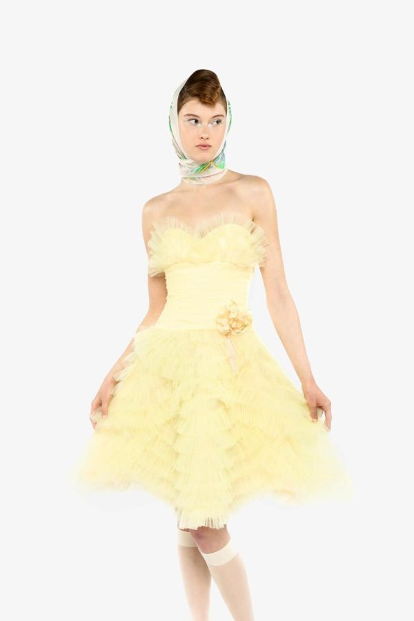 The Party Girl Strapless Tulle Dress exudes refined elegance with its meticulously handmade tulle and exquisite craftsmanship. Featuring a detachable flower pin for added versatility, this dress effortlessly combines sophistication with a touch of whimsy. It’s the ultimate statement piece for any exclusive occasion.