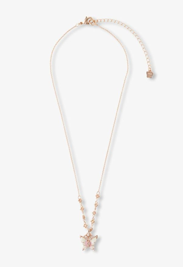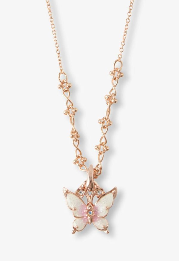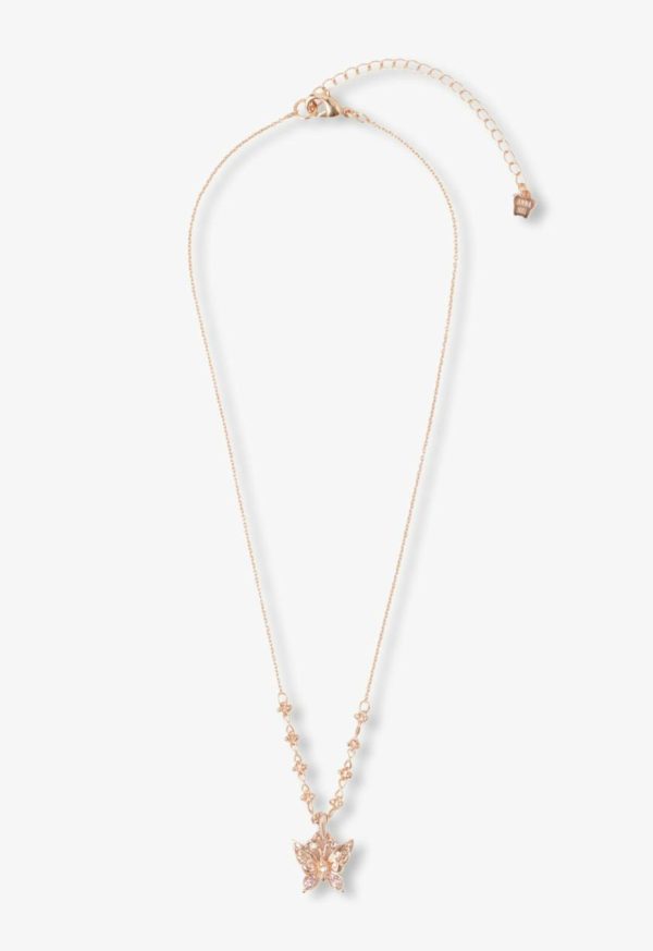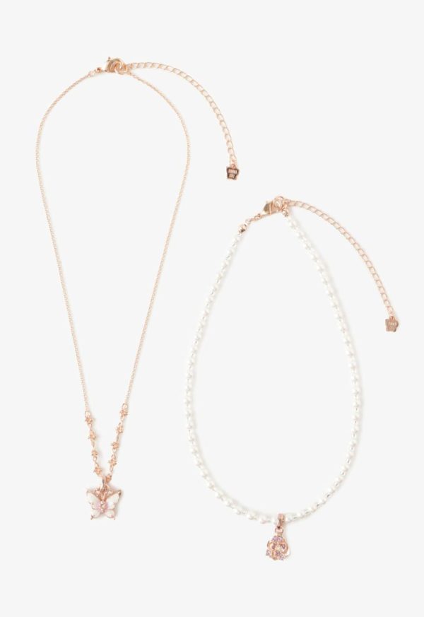 Discover the versatility of the Butterfly & Rose Necklace Duo! This stylish duo features the iconic Anna Sui pink butterfly in rose gold alongside a shimmering faux pearl necklace adorned with a delicate rose pendant. Wear them together for a striking look or style them separately for a touch of elegance. Presented in a limited edition box. Perfect for adding charm and color to any outfit!
