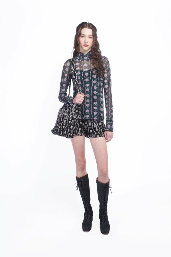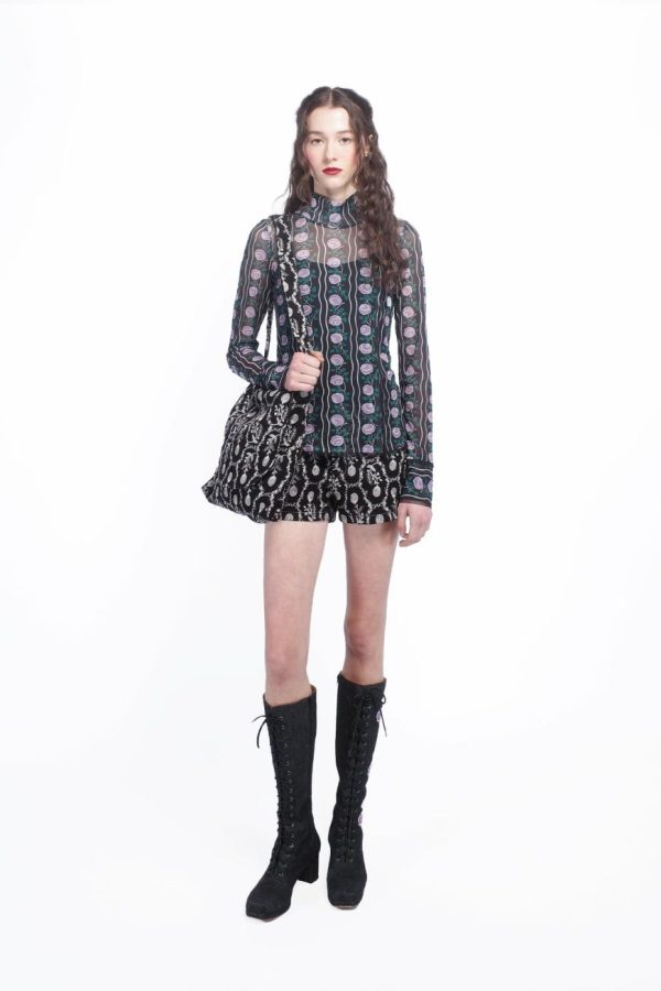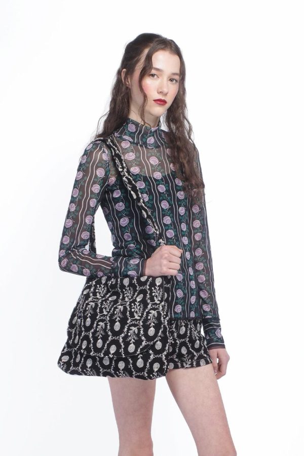 Sophisticated and sleek, the Rosetti Mesh Turtleneck Top is a versatile wardrobe staple that adds a touch of modern elegance to any look. Crafted from soft, breathable mesh fabric, this top features a flattering turtleneck design that offers both warmth and style. The lightweight, sheer material creates an alluring, layered effect, making it perfect for pairing with skirts or under dresses. Whether worn alone for a bold statement or layered for added texture, the Rosetti Mesh Turtleneck Top brings a refined edge to both casual and evening outfits.