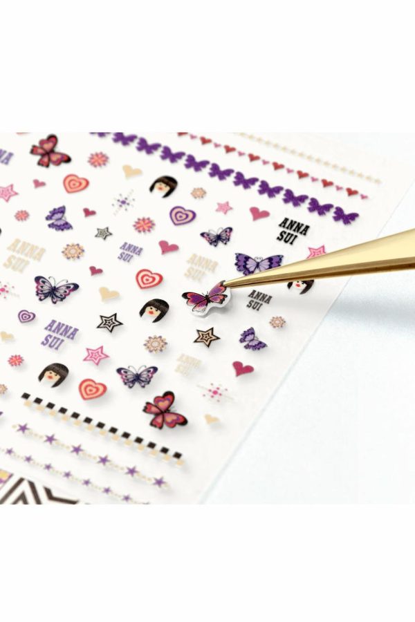 Decorate your nails with stickers inspired by Anna Sui’s favorite butterflies, hearts, stars, and iconic signature character face. Made with high quality adhesive.
