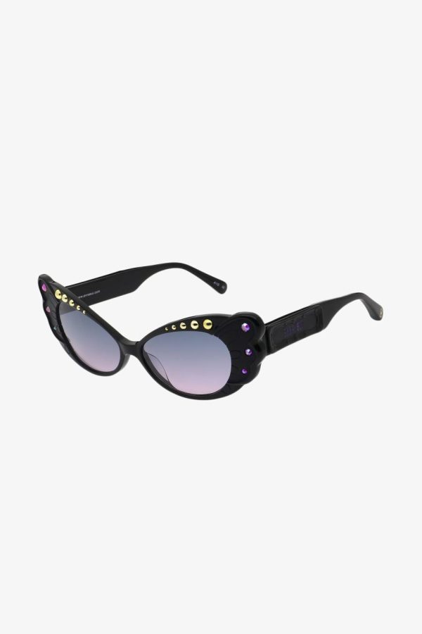 Embrace the whimsical elegance of Anna Sui’s iconic design with the Pearl Wing Sunglasses, where fashion meets function. Inspired by Anna’s signature love for butterflies, these sunglasses feature a stunning shape reminiscent of delicate butterfly wings, creating a unique and eye-catching silhouette.