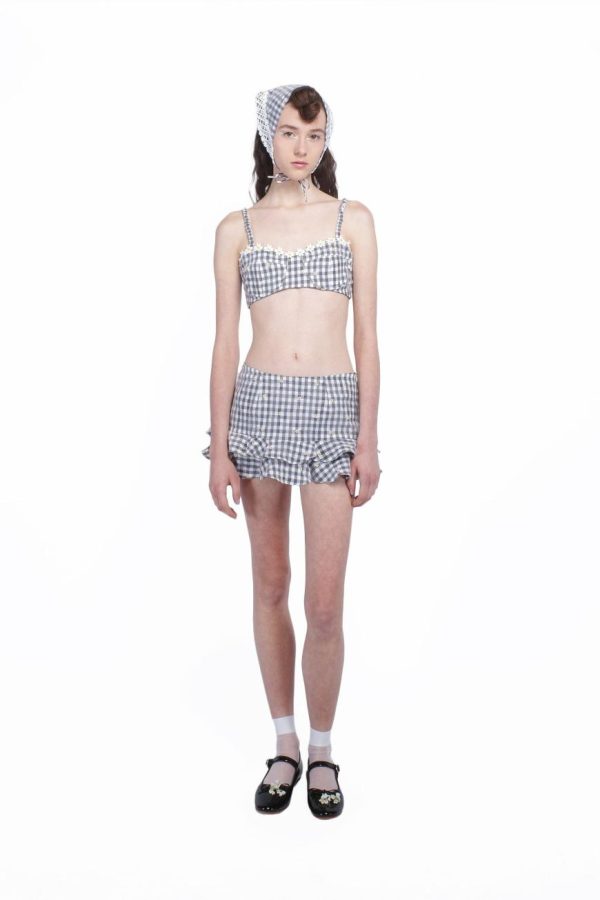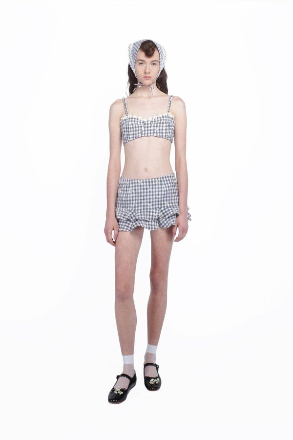 Soak up the sun in style with our Daisy Embroidery on Gingham Bikini Set. This non-functional swim set features charming floral embroidery and a playful gingham pattern, making it the perfect choice for lounging and relaxing in the sun.