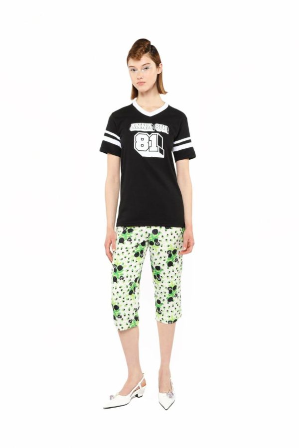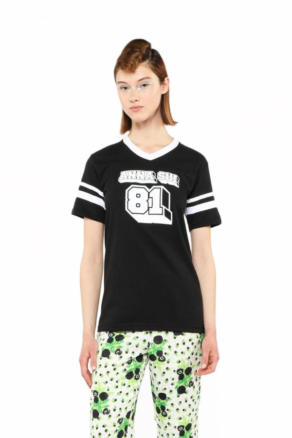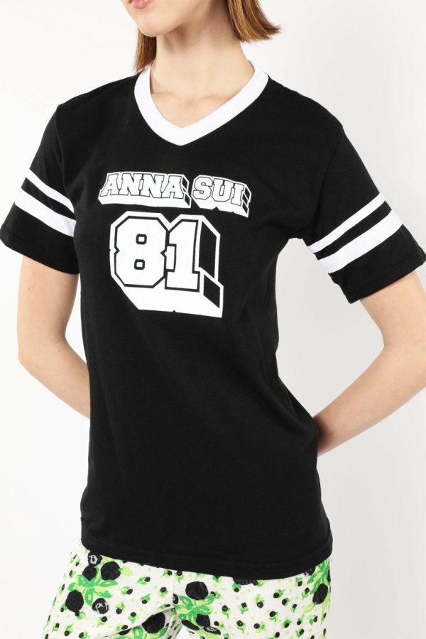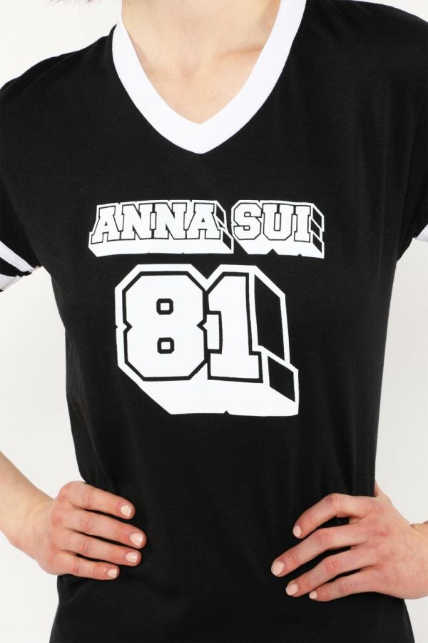 The Anna Sui Logo T-Shirt in black, designed by artist Dean Chooch Landry, features a classic 81 logo design for a stylish yet comfortable look.